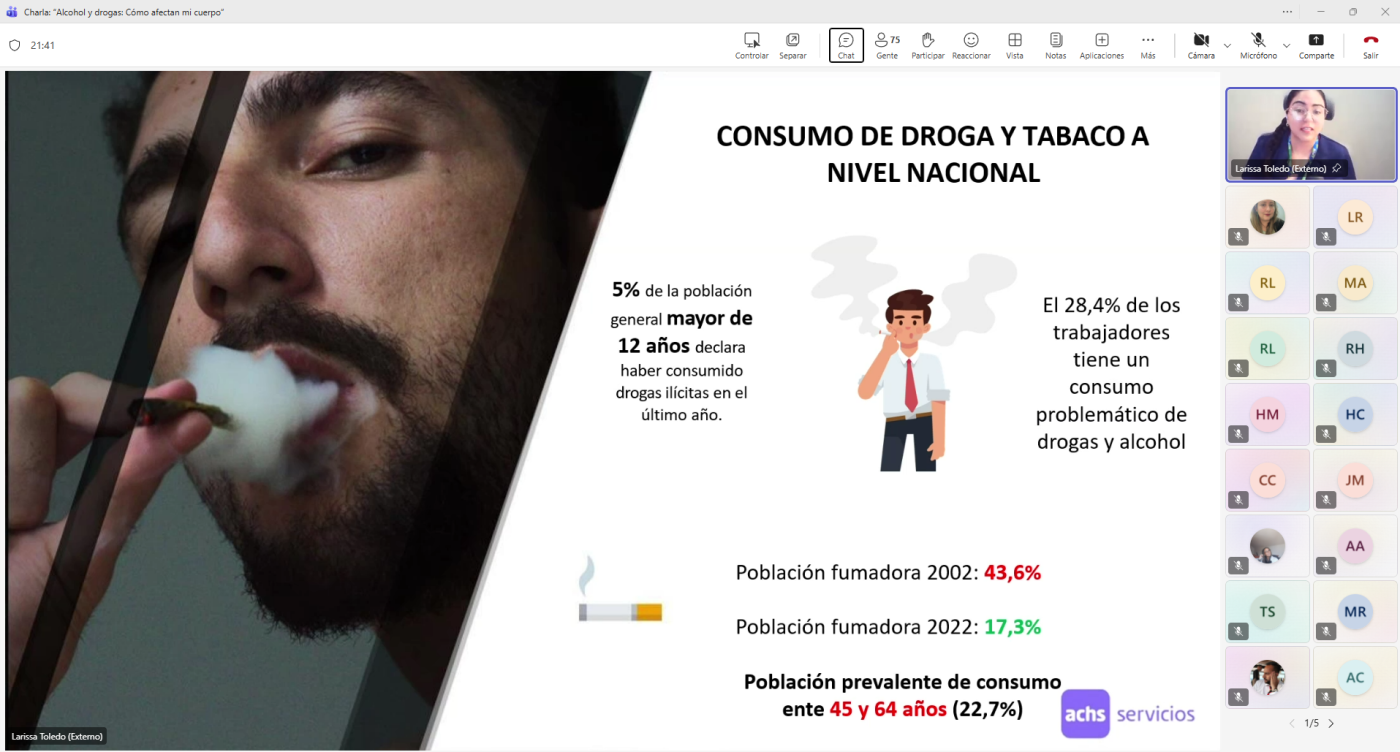 Como parte de nuestro compromiso continuo con la salud, el bienestar y la seguridad de nuestros colaboradores, Grupo O2 llevó a cabo con gran éxito la charla online “Alcohol y drogas: Cómo afectan mi cuerpo”, dictada por la Asociación Chilena de Seguridad (ACHS) y a