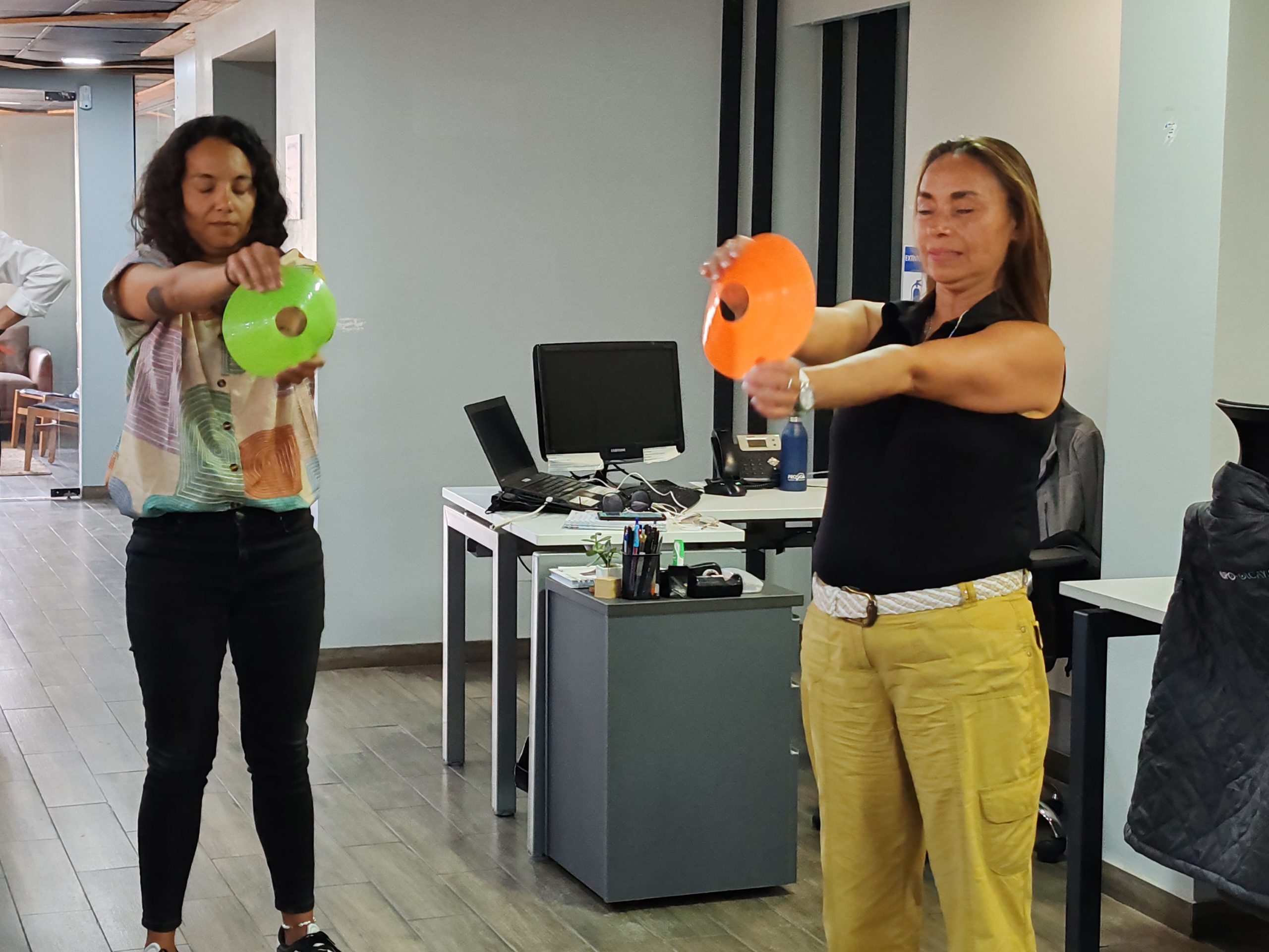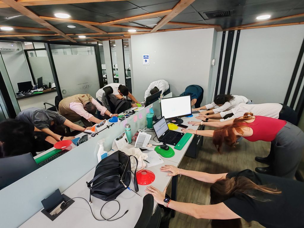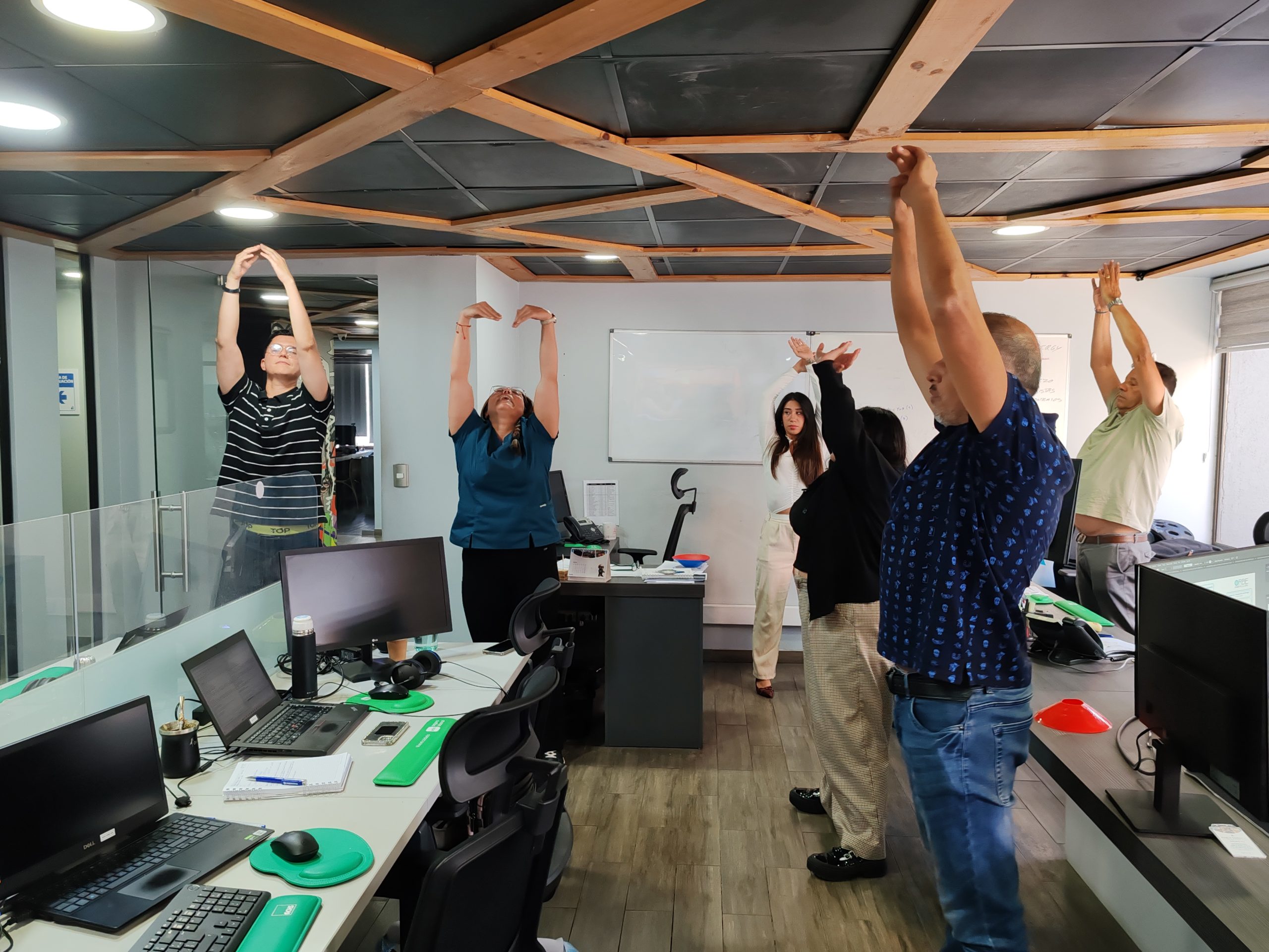Asimismo, se reforzaron recomendaciones importantes, como pausar las tareas frente al computador, seguir las indicaciones de los profesionales y comunicar cualquier molestia física previa que pudiera limitar la ejecución de los movimientos.