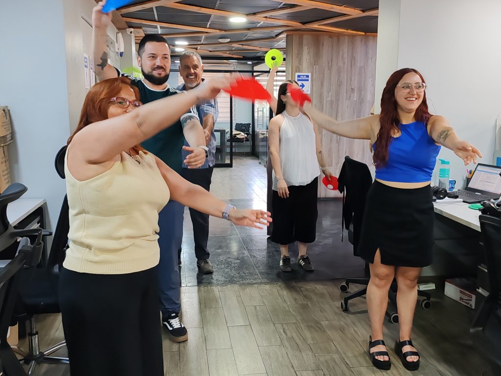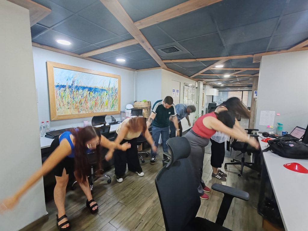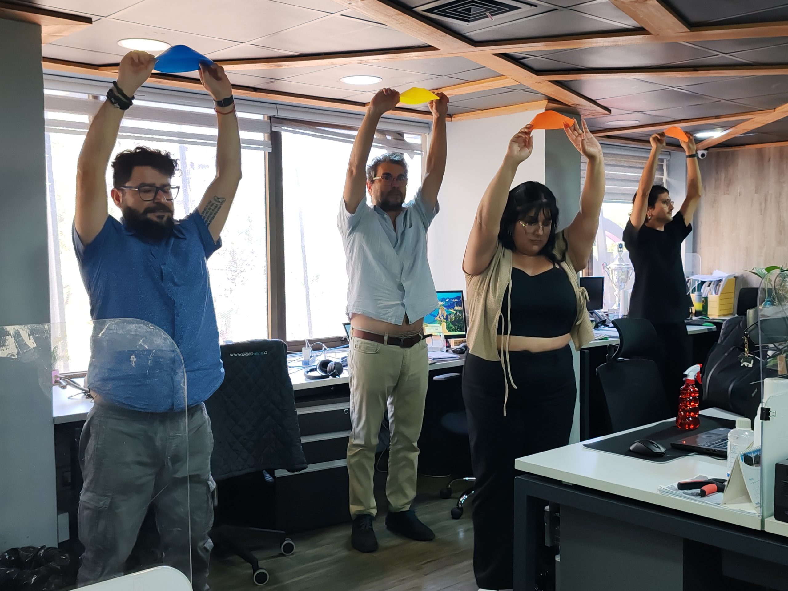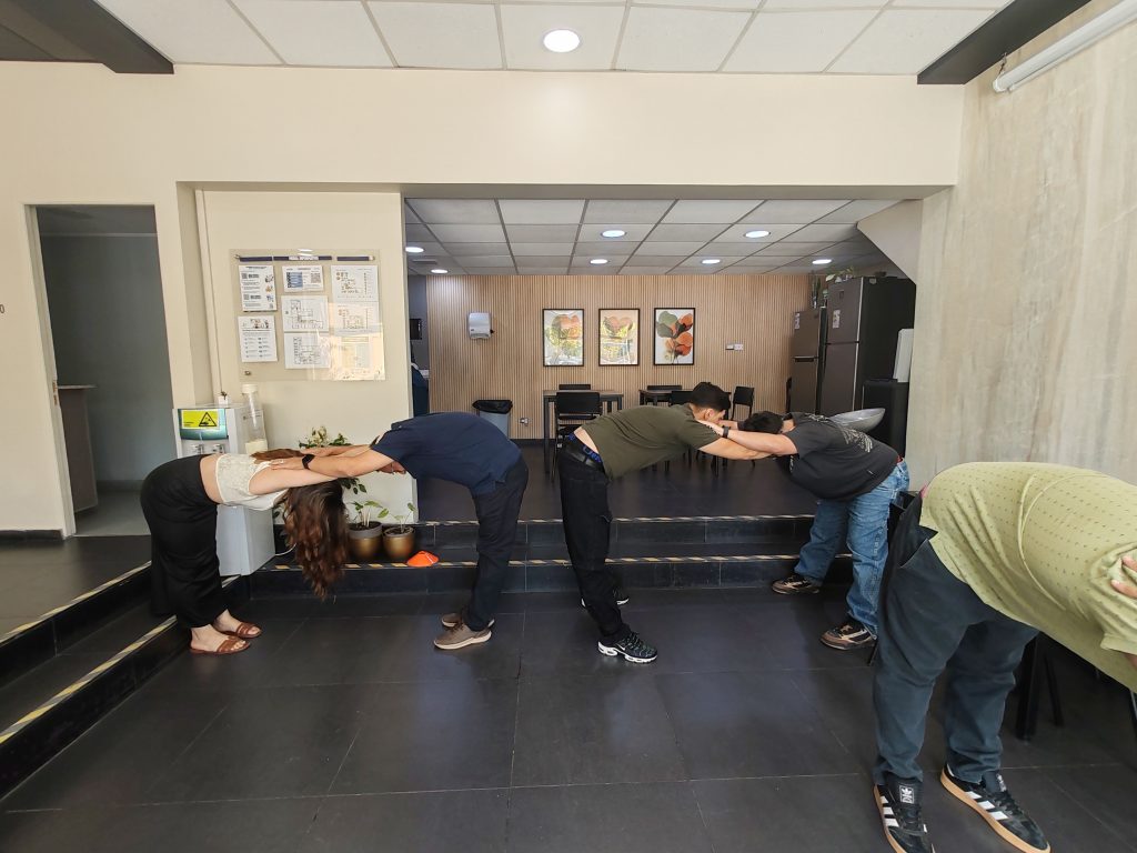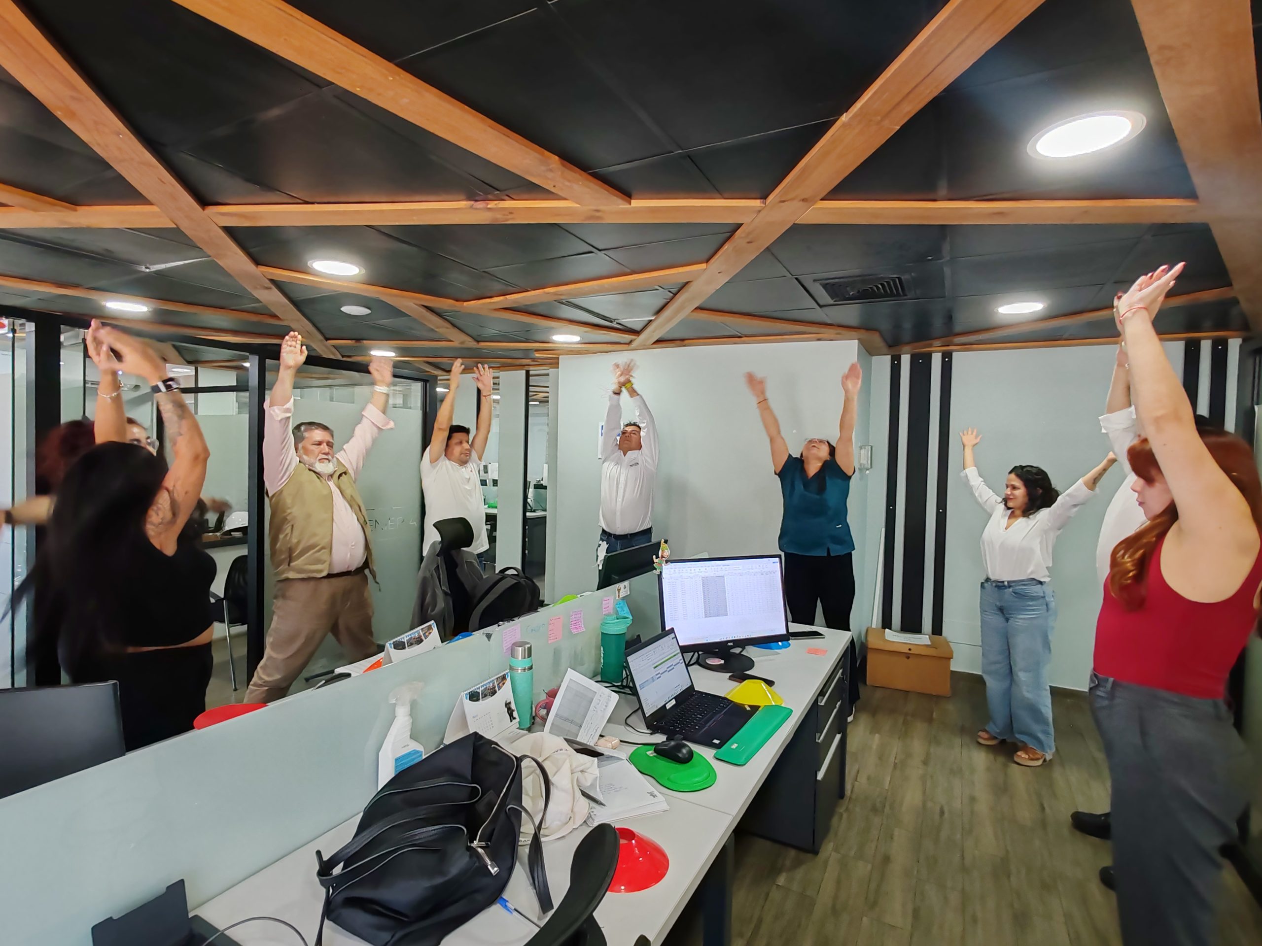 La actividad tuvo como propósito promover hábitos saludables, disminuir el estrés laboral y prevenir lesiones osteomusculares a través de ejercicios de movilidad y estiramiento guiados por profesionales de la ACHS. Los instructores recorrieron los distintos sectores de trabajo, integrando la actividad de manera fluida en la jornada laboral y permitiendo que cada equipo participara sin interrumpir significativamente sus funciones.